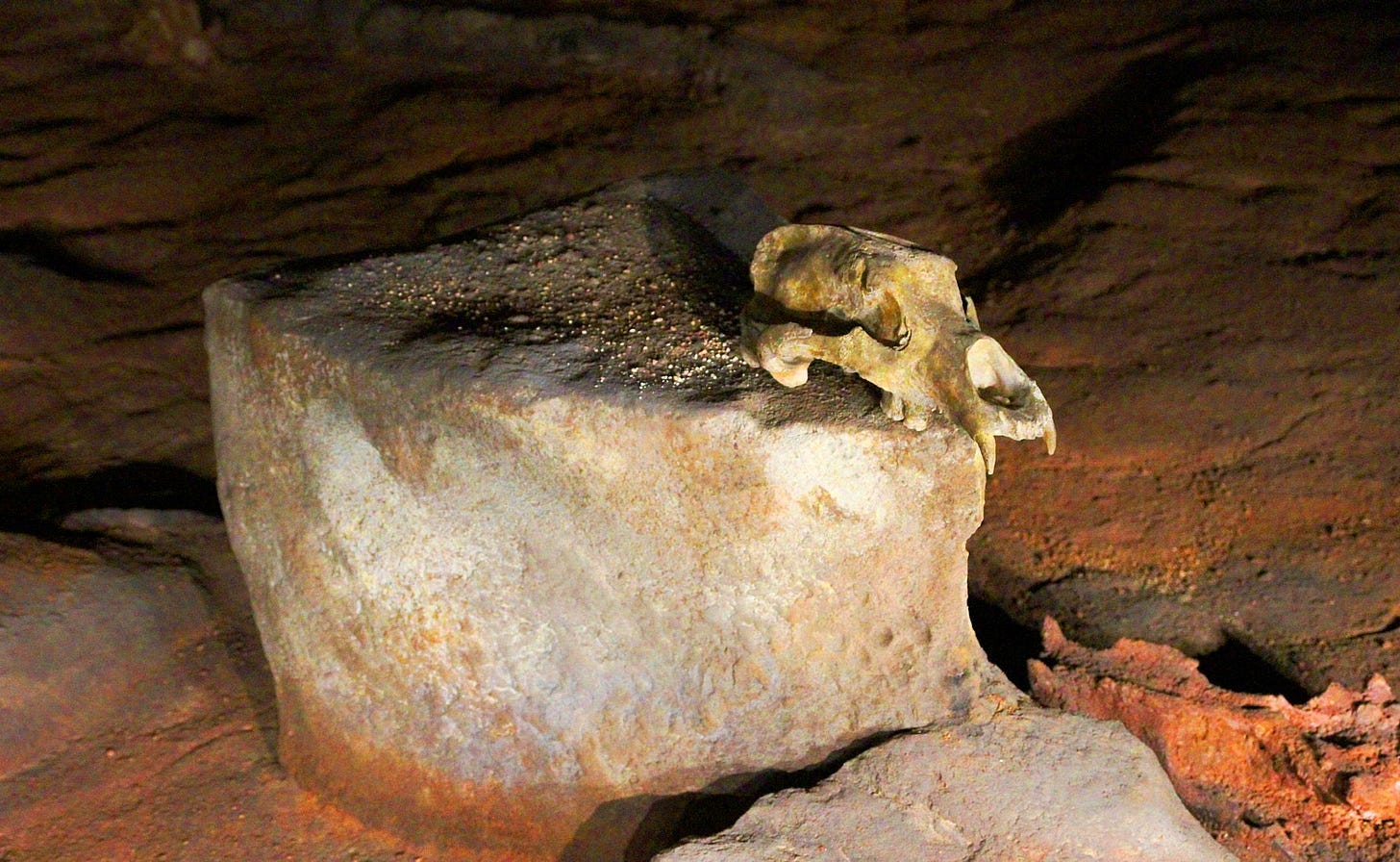 Знахідки в печері Шове на півдні Франції являються ще одним свідченням поширення серед давніх людей культу печерного ведмедя. Подібні ритуальні зв’язки вказують на зародження тотемізму в верхній палеоліт.